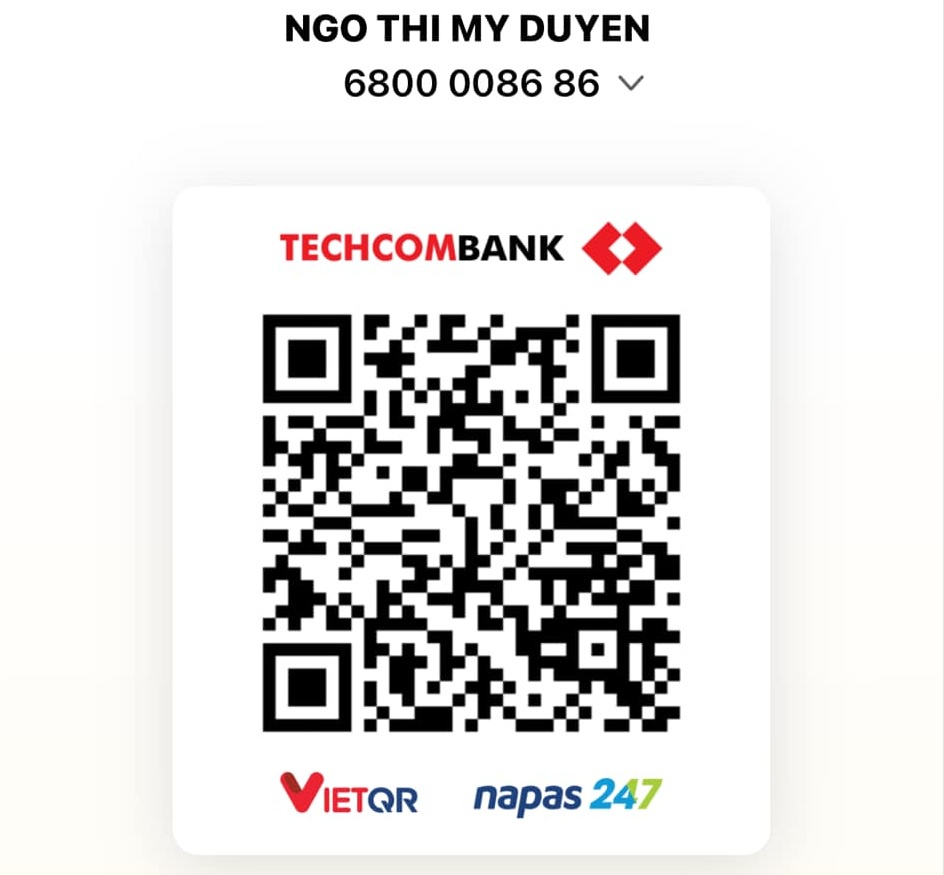 Donate Bank – Techcombank – stk: 6800008686 – Ngo Thi My Duyen